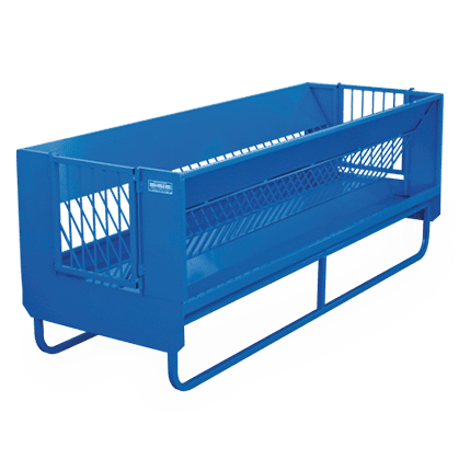 #WTF Feeds small square bales and grain Basket rod spacing is 2¾” 8″ alley through centre of feeder Attach multiple feeders end-to-end by removing doors Stacks nicely for transport Dimensions: 96″l x 36″w x 38″h
