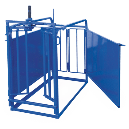 #SCHHG Self-catching head gate and chute Ideal for vaccinations, de-worming, tagging, etc Attaches to front of #WCCT working chute Both sides open for easy access Dimensions: 54″l x 20″w x 40″h