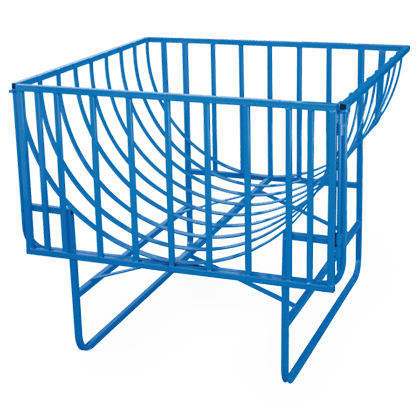#GOB Basket height position built specifically for goats 1¼” square tube frame 1½” x ¼” flat hoops with 6″ spacing Stacks nicely for transport Access door on end makes bale loading easy Dimensions: 64″l x 66″w x 57″h